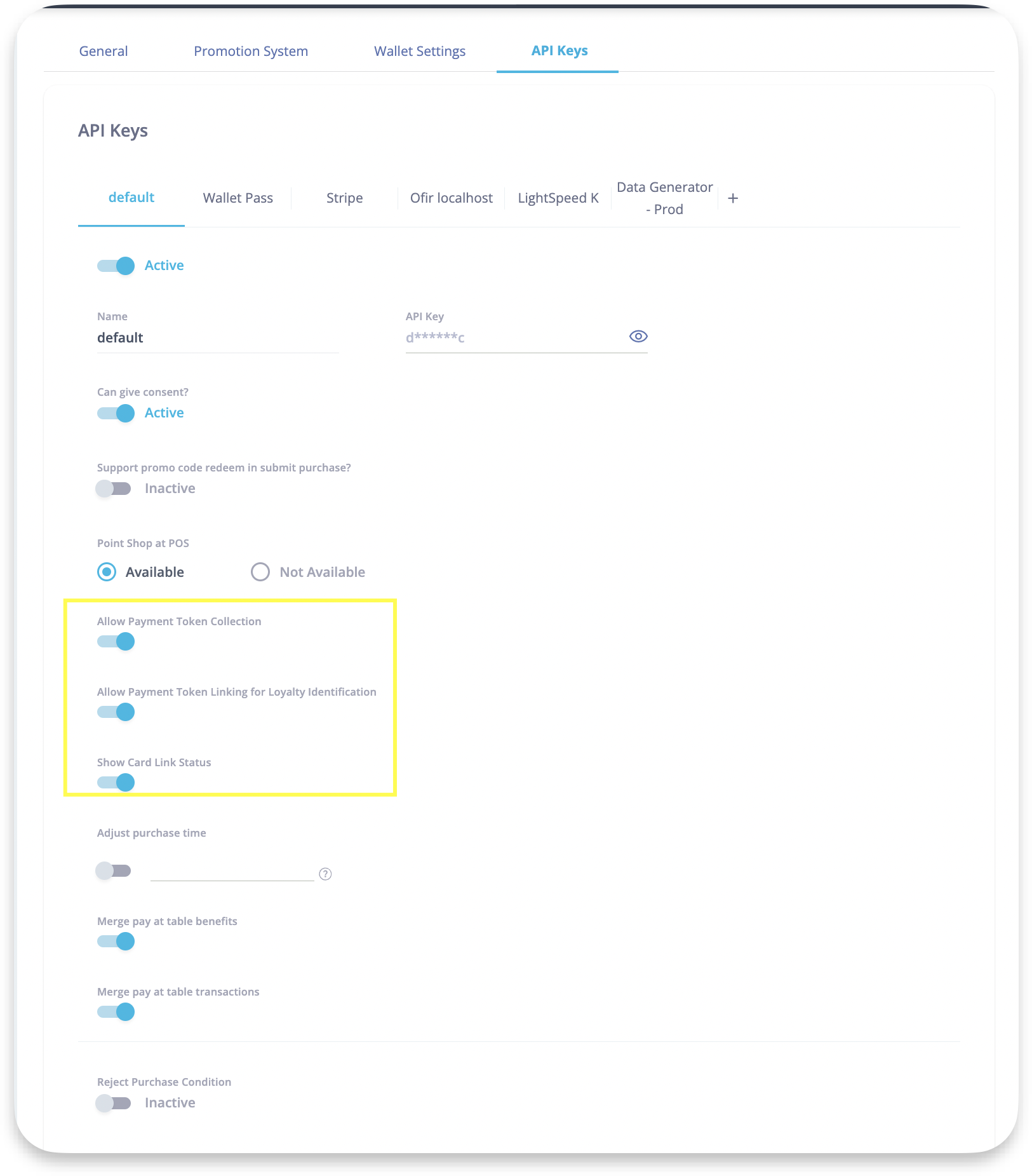 3) Enable dedicated flags in POS & Connectivity under API Keys: