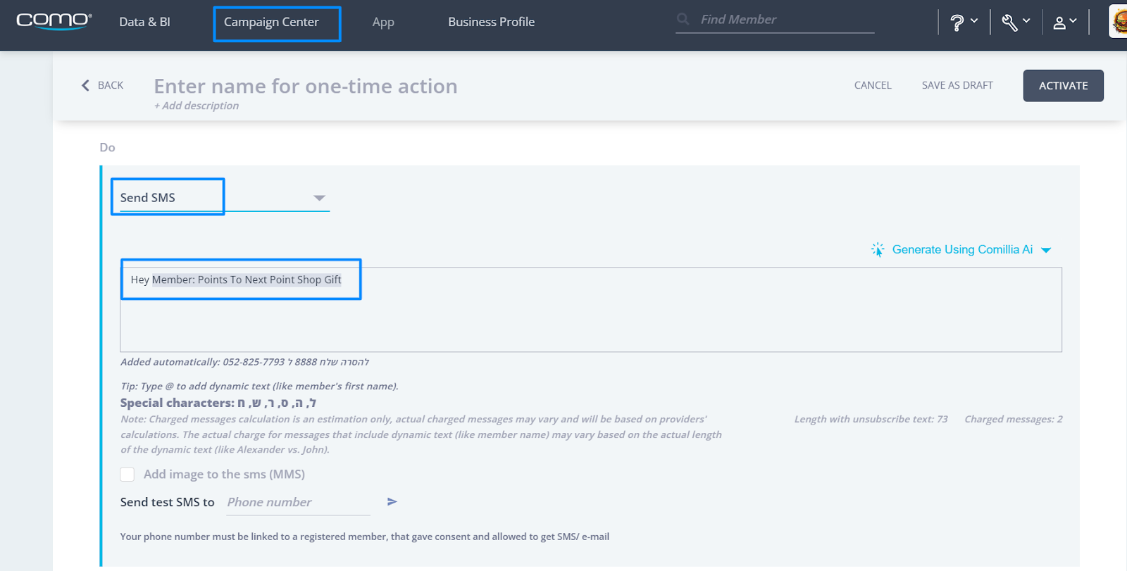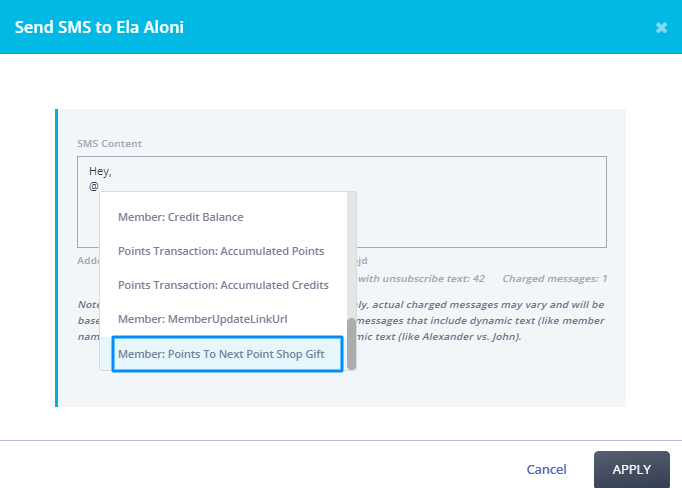 We’ve added a new dynamic mention that shows members exactly how many points they still need to earn before reaching their next available Point Shop gift. This field can now be used in both Email and SMS communications, whether sent directly from a member profile or as part of campaigns (rules and one-time actions).