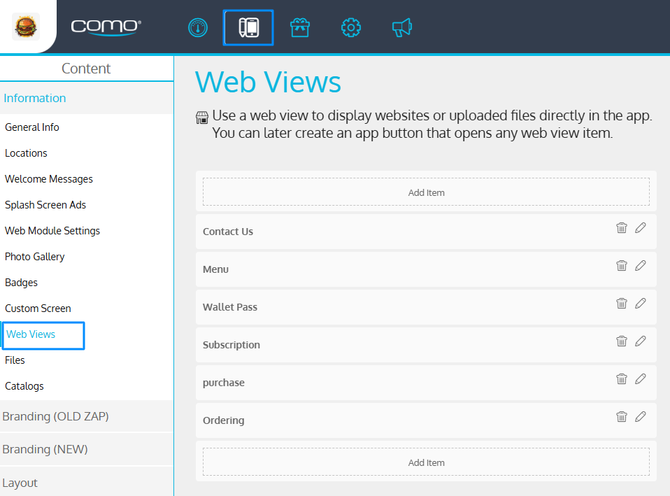 Navigate to Hub 1 → App → Web Views → [select the relevant category].- Set the following parameters exactly as shown in the screenshot (mandatory - Manually):