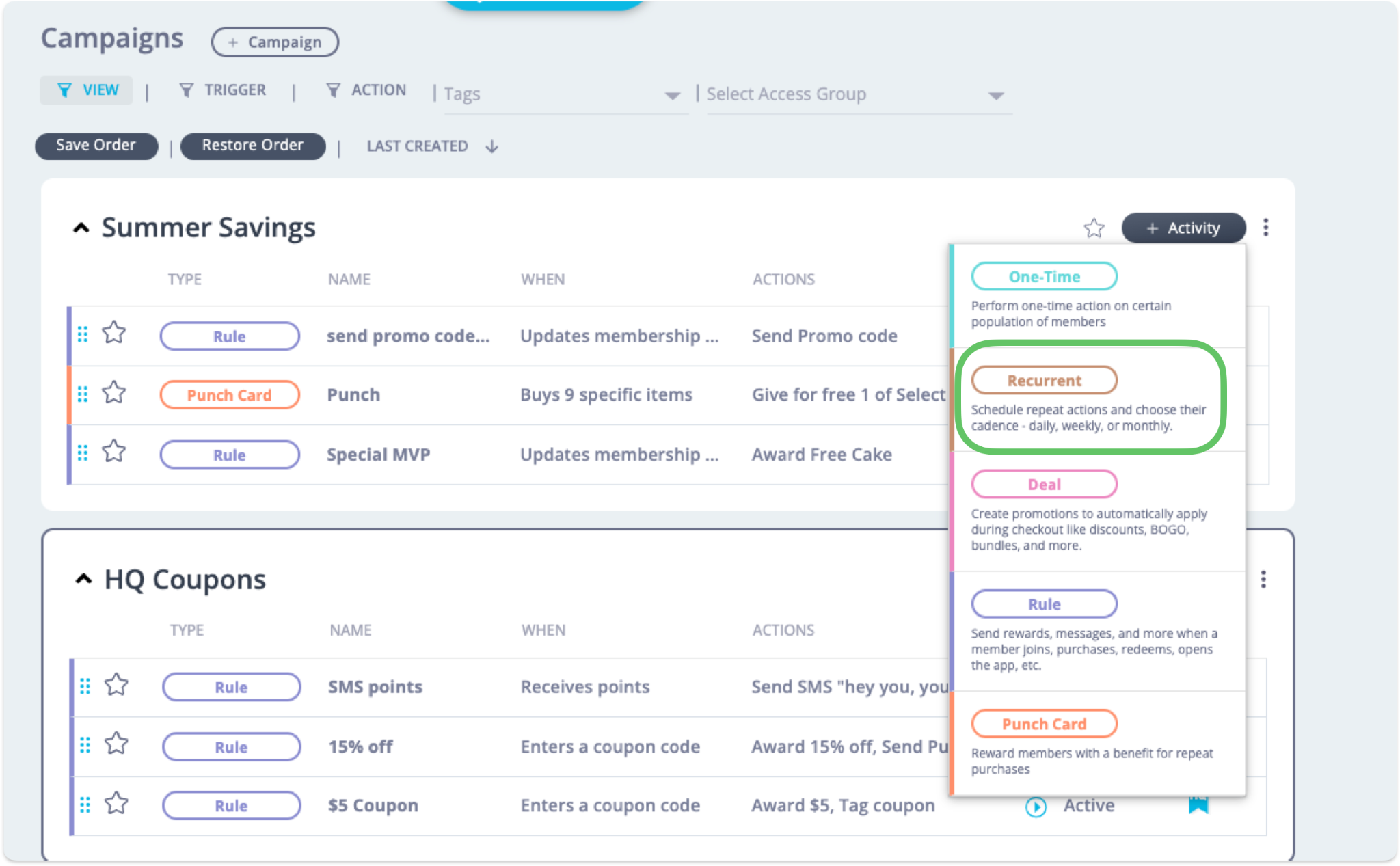 Merchants no longer need to manually repeat promotional actions. By setting up Recurrent actions, activities can be automatically executed on a chosen schedule, saving time and reducing the risk of human error. By automating these repetitive tasks, merchants can focus on higher-level strategy while ensuring their campaigns run smoothly and consistently. This feature is a powerful tool for improving efficiency and maintaining a steady marketing presence.