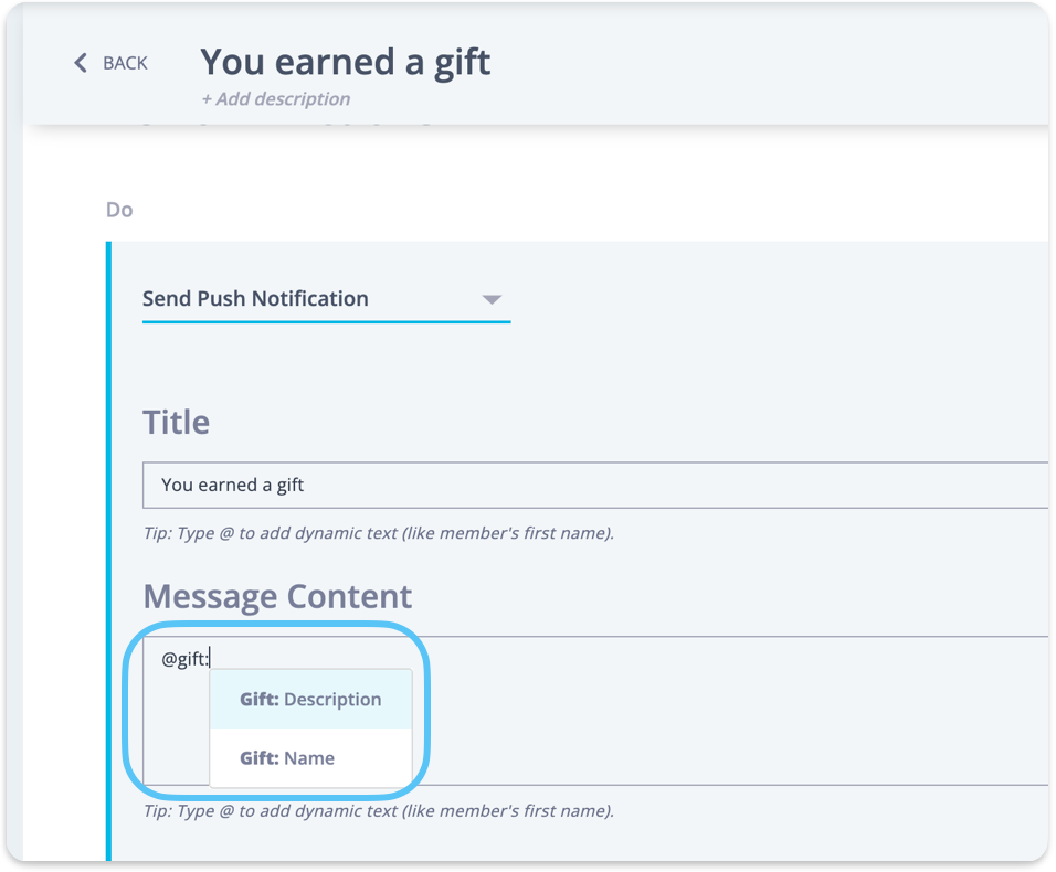 The update introduces two new mentions, @Gift: Name and @Gift: Description, allowing merchants to reference specific gift details within their communication templates. These mentions are dynamically populated based on the gift involved.