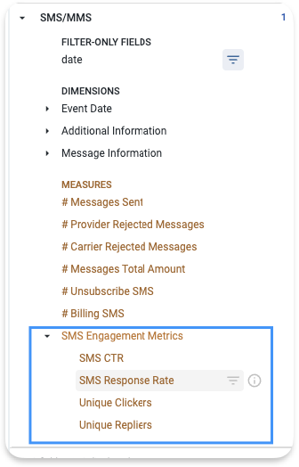 Note: These metrics rely on data captured by the Smart Reply and SMS Engagement Tracking features. Make sure both are enabled to populate the new measures.